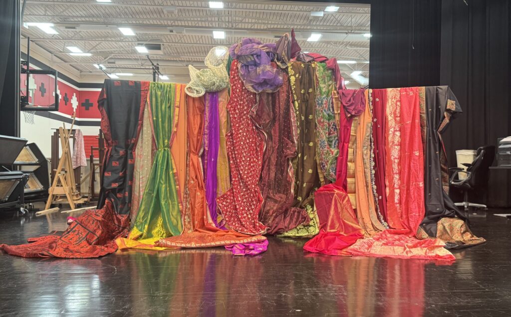Installation of collaborative student fabric collage.