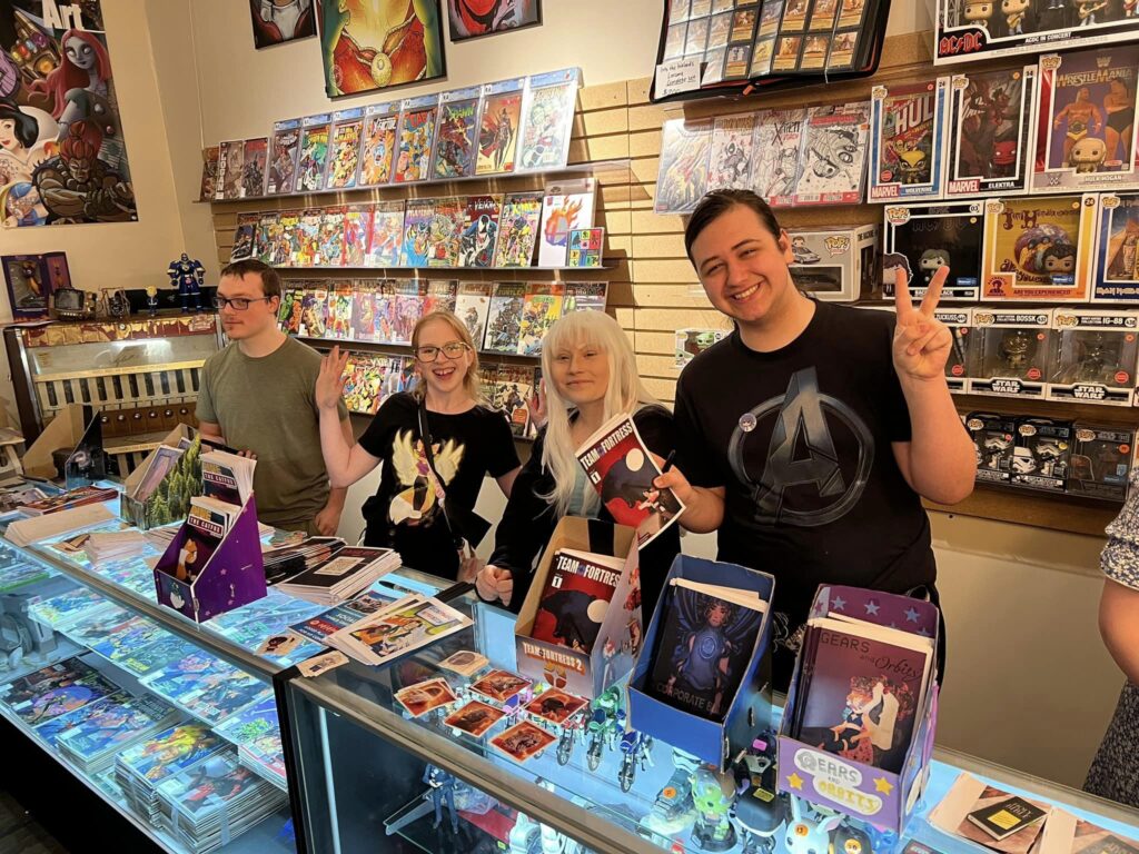 The 2023/2024 school year featured Jerzy’s first full year-long residency at Tri-Rivers Career Center. This project, funded by the Ohio Arts Council’s TeachArtsOhio grant, had students take a deep and meaningful dive through visual narrative, connecting comics storytelling principles to other interactive media curricula. The students’ work was celebrated at Thunderfury Comics, a local comic store, during Free Comic Book Day.