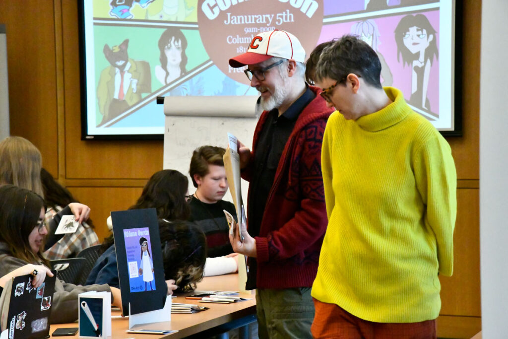 In 2023 Jerzy led a two-week residency, “Finding Courage,” for Project Jericho. Funded by The Turner Foundation and The Ohio Arts Council, students created comics to serve staff and visitors of Mental Health Services (MHS). Pages from the comics were made part of an art installation at MHS, and their work was collected into a print anthology.