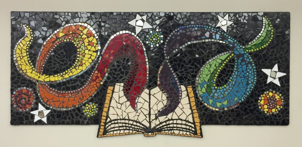 Vicki leads students toward envisioning and designing of the final product as well as their own personal projects. From there, she facilitates the creation of vibrant mosaic artworks and permanent wall installations using low-fire tile, high-fire tile, sparkling mirror, colorful stained glass, translucent glass, and an array of eye-catching materials. She teaches students the safe and efficient methods of breaking ceramic tiles, cutting tesserae with hand precision tools, and adhering materials onto the proper substrates.