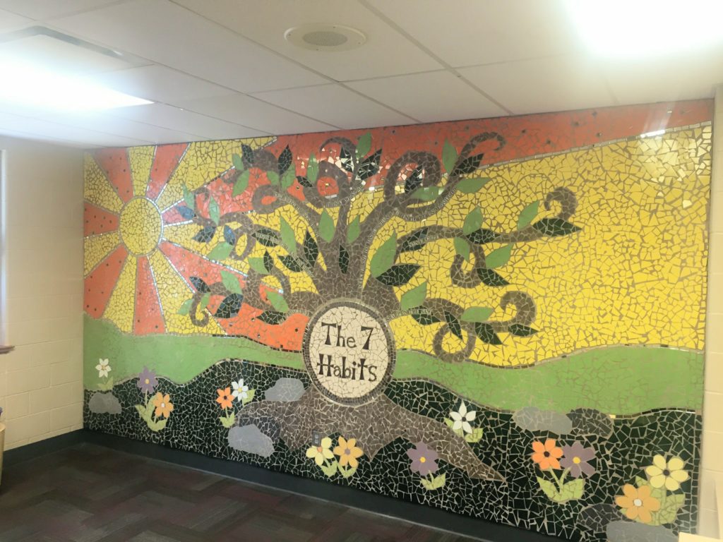 Early Head Start Home Visitors Staff Professional Development (Lancaster). EHS Staff created mosaic heart which was given to Early Head Start Sanderson Preschool.